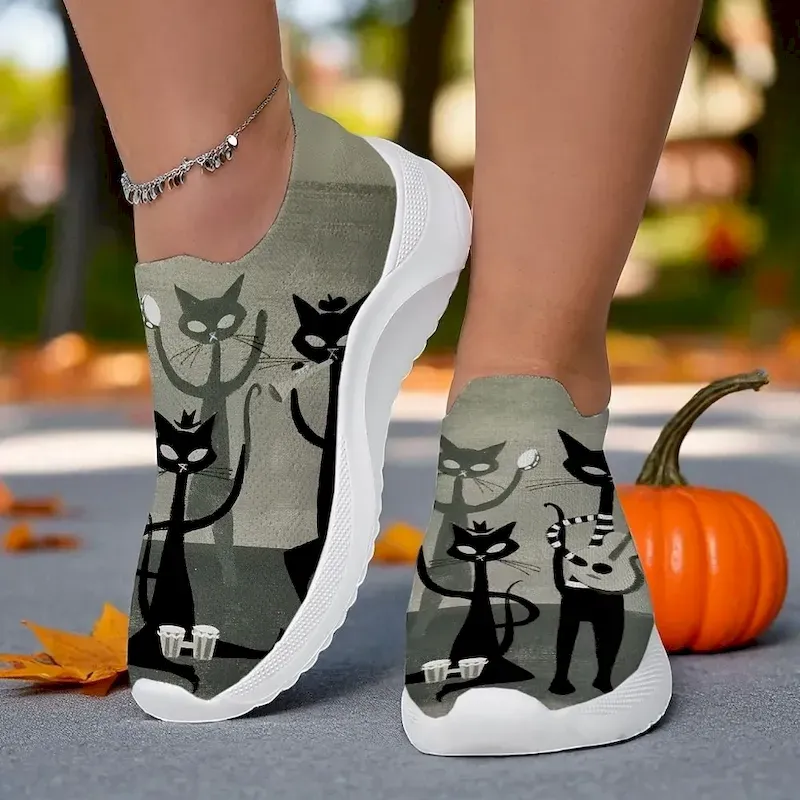 Halloween-Womens-Black-Cat-Print-Mini-Dr-19548