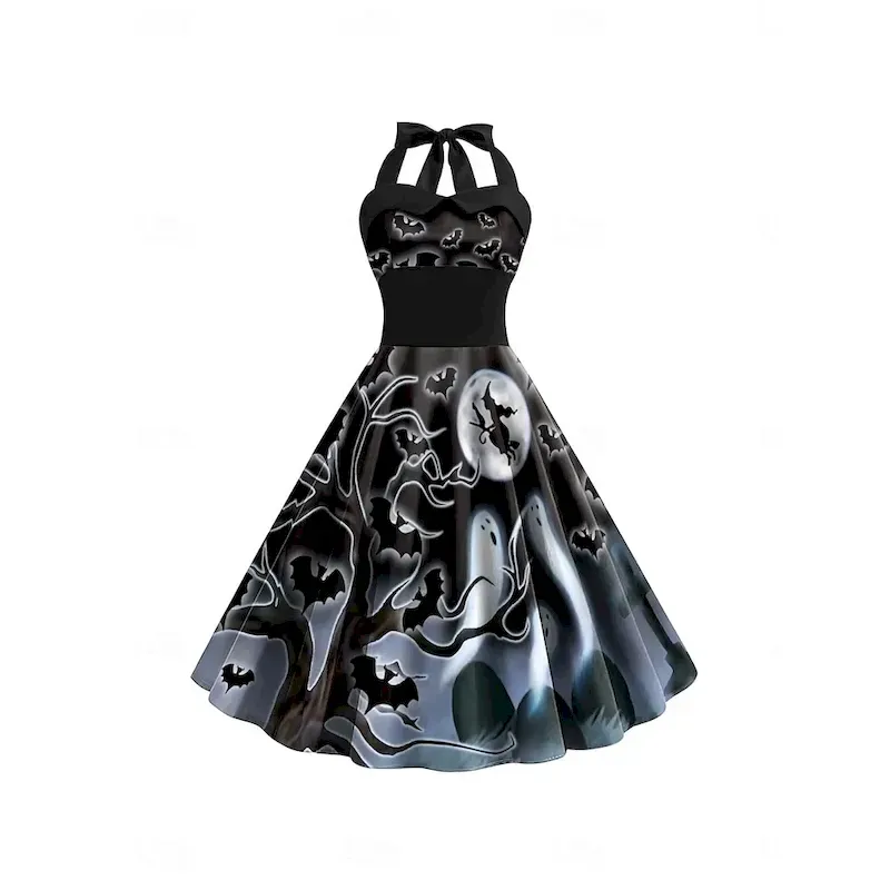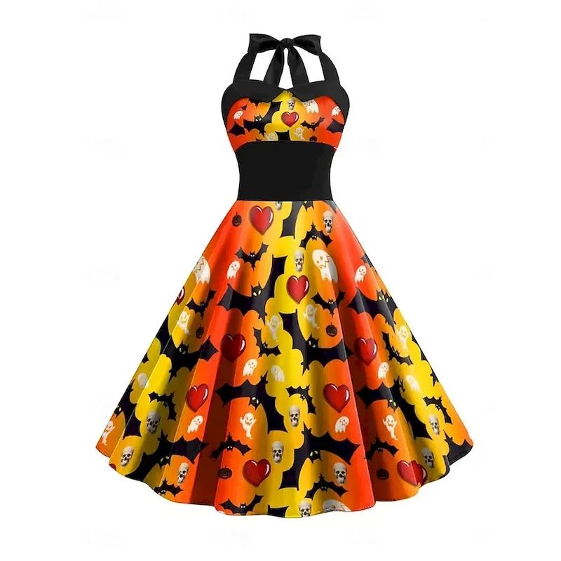 Halloween Women’s Pumpkin Print Midi Dress A Line Dress Vacation Casual Daily Holiday Regular Fit Pumpkin Spider Sleeveless Halter Neck Black Yellow Orange Gray Summer Spring Fall