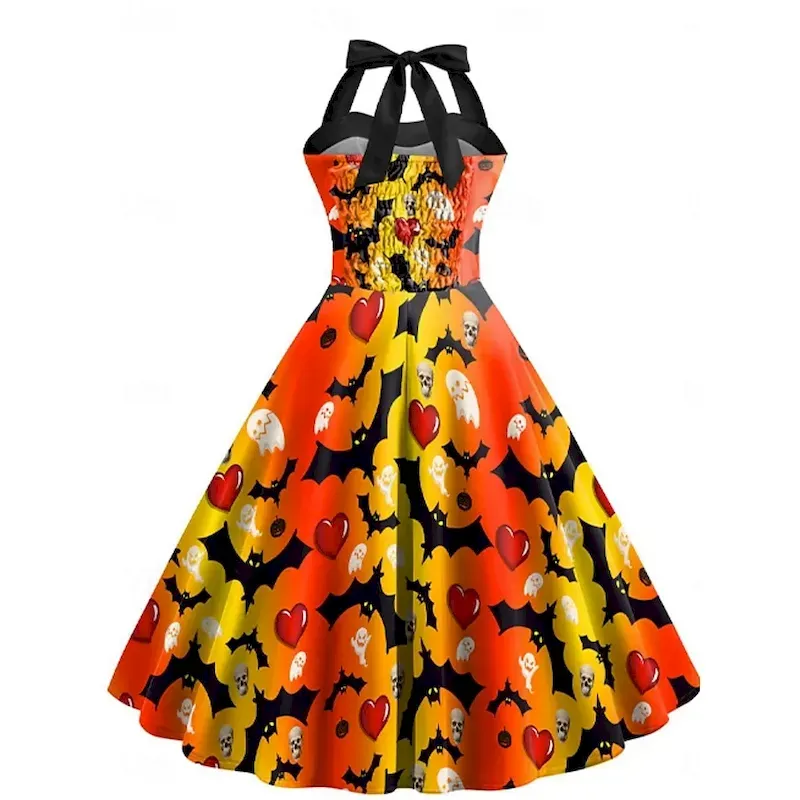 Halloween-Womens-Pumpkin-Print-Midi-Dres-1787