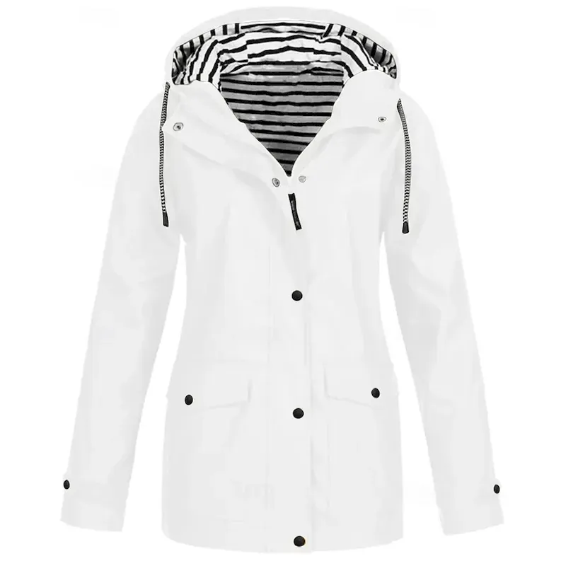 Women’s Hoodie Jacket Waterproof Rain Jackets Rain Coats Warm Comfortable Zipper Pocket Buttons Fashion Plain Street Holiday Zipper Regular Hooded Regular Fit Long Sleeve Outerwear White Yellow Pink
