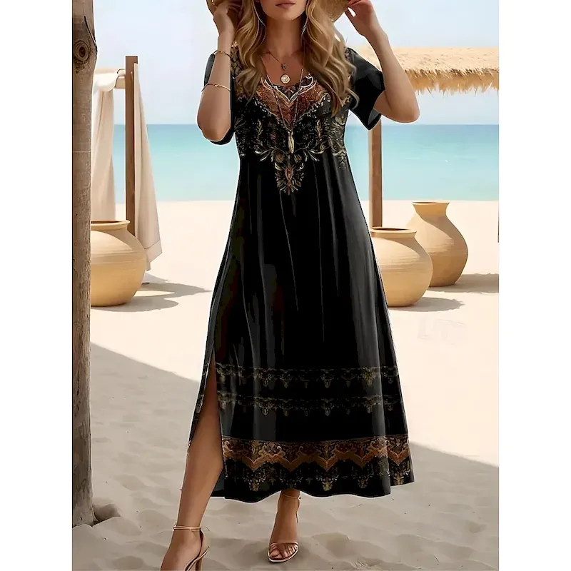 Women’s Midi Dress Sundress A Line Dress Vacation Casual Boho Butterfly Sleeve Beach Regular Fit Graphic Tribal Short Sleeve Crewneck Light Blue Black Gold Black Light Green Summer Spring