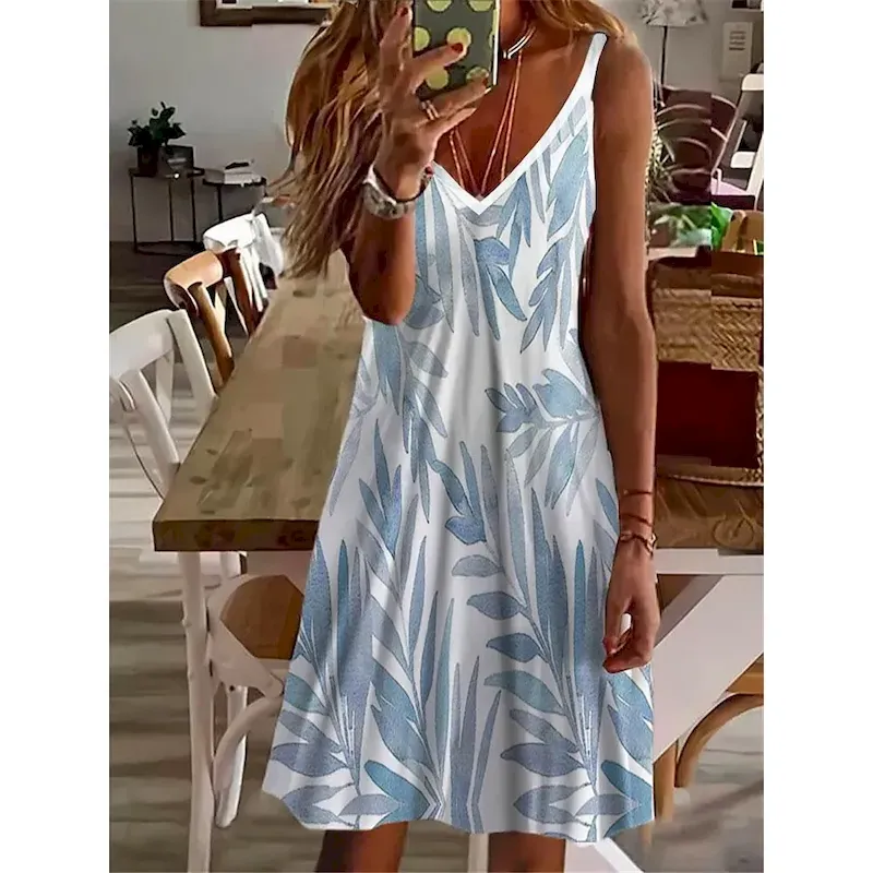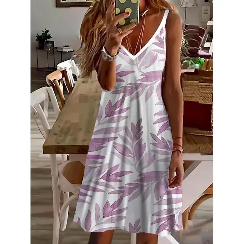 [Fabric]: Crafted from high-quality polyester, this dress offers a lightweight, breathable feel that’s perfect for enjoying warm spring and summer days. The fabric is designed for durability and comfort, ensuring it remains a staple in your wardrobe.[Fit]: Featuring a shift silhouette, this dress provides a relaxed and comfortable fit. Its regular fit allows for easy movement and flexibility, making it the ideal choice for casual outings.[Design Highlights]: This mini dress showcases a playful spaghetti strap neckline that adds a touch of elegance to its casual design. The vibrant botanical print, available in colors like Blue, Green, Pink, Purple, and Yellow, enhances its fresh and stylish appeal.[Occasions]: Suitable for a variety of casual settings, this dress is perfect for vacation, daily wear, and outdoor activities. Whether you’re taking a leisurely stroll or enjoying a beach outing, this dress seamlessly adapts to your summer lifestyle.[Size Range]: Available in sizes S to 3XL, this dress caters to a wide range of body types, ensuring a flattering fit for every woman seeking a blend of style and comfort.OK