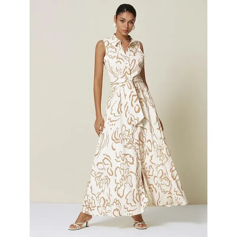 – Stay cool and comfortable this summer in our stylish polyester shirt dress.- Features a sleeveless design and maxi dress length for a trendy look.- Designed with convenient pockets and included belt for added style.- Perfect for women who want a versatile, chic dress for any occasion.- The classic shirt collar neckline adds a touch of sophistication to this maxi dress.