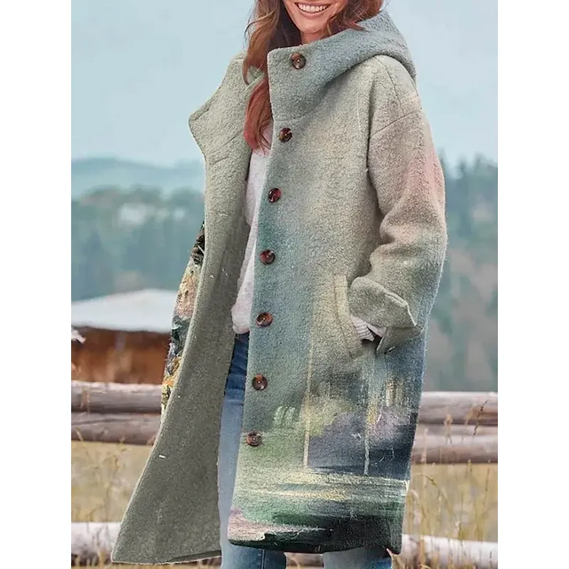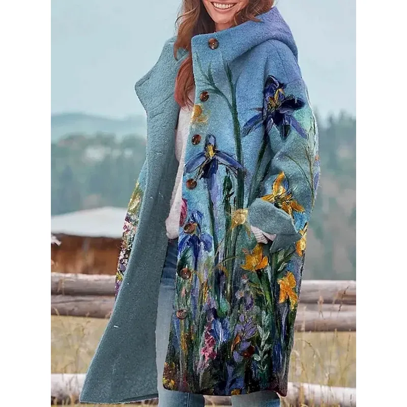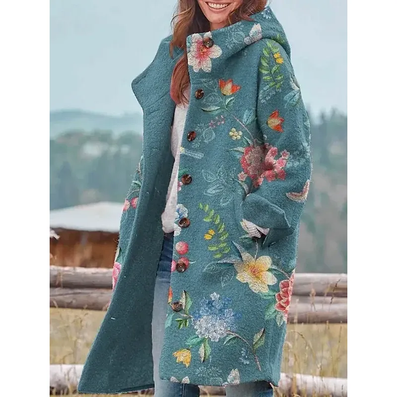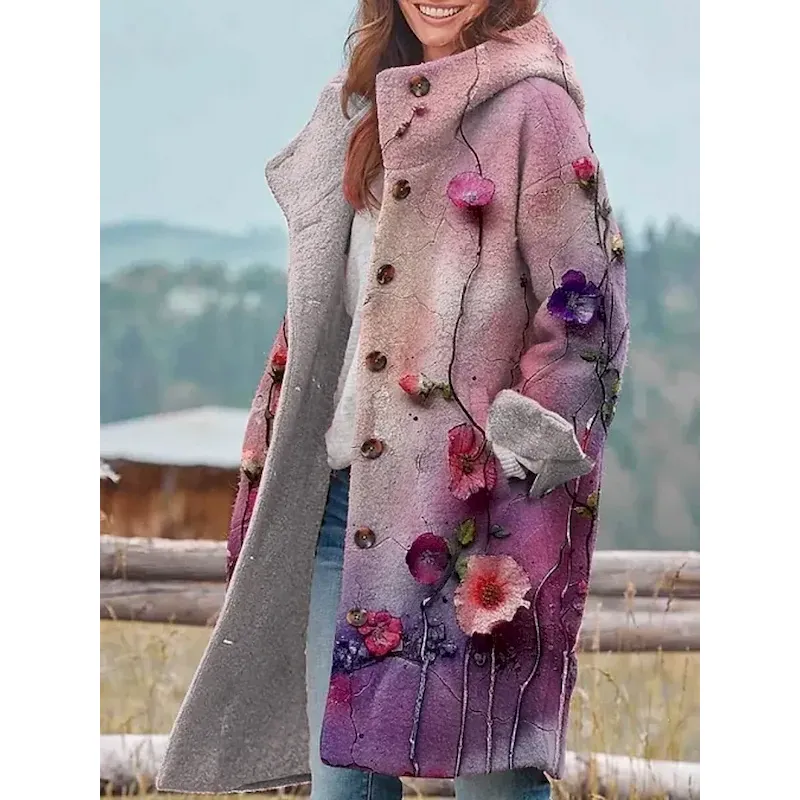 Women’s Winter Jacket Fleece Jacket Coat Warm Breathable Pocket Buttons Print Active Daily Casual Floral Vacation Street Daily Single Breasted Long Hoodie Regular Fit Long Sleeve Outerwear Yellow